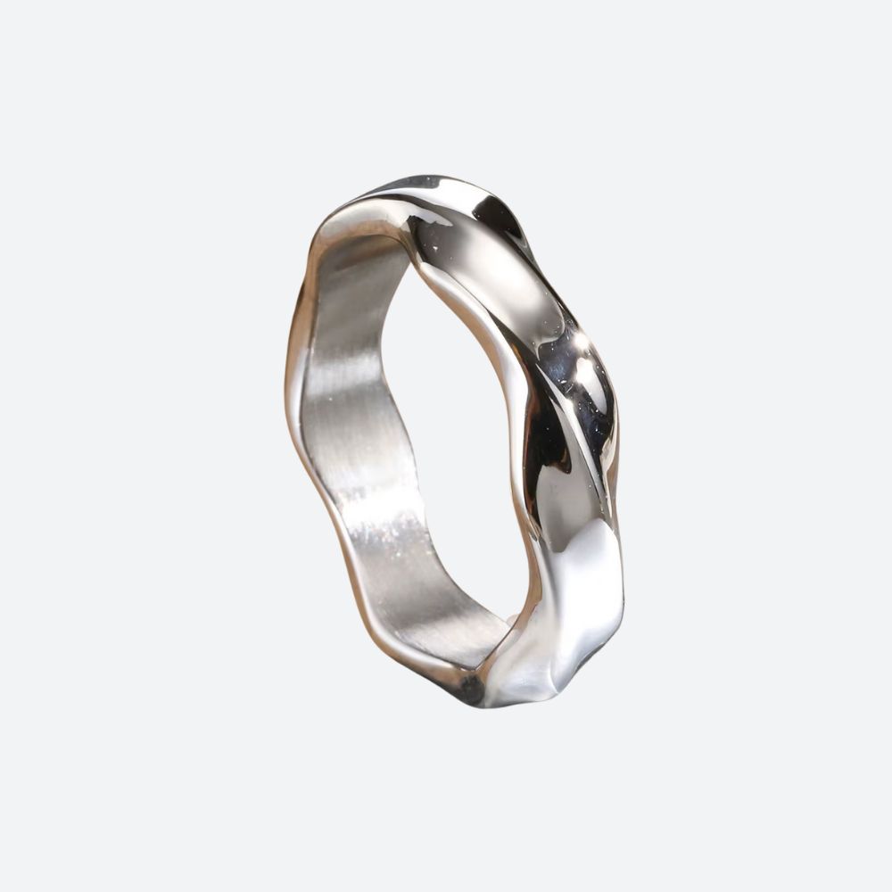 Inspirée par les mouvements naturels du métal fondu, cette bague en acier inoxydable capture la beauté de l’imperfection. Chaque courbe reflète la lumière avec intensité, créant un jeu visuel subtil et captivant. Un bijou qui souligne votre singularité avec discrétion.