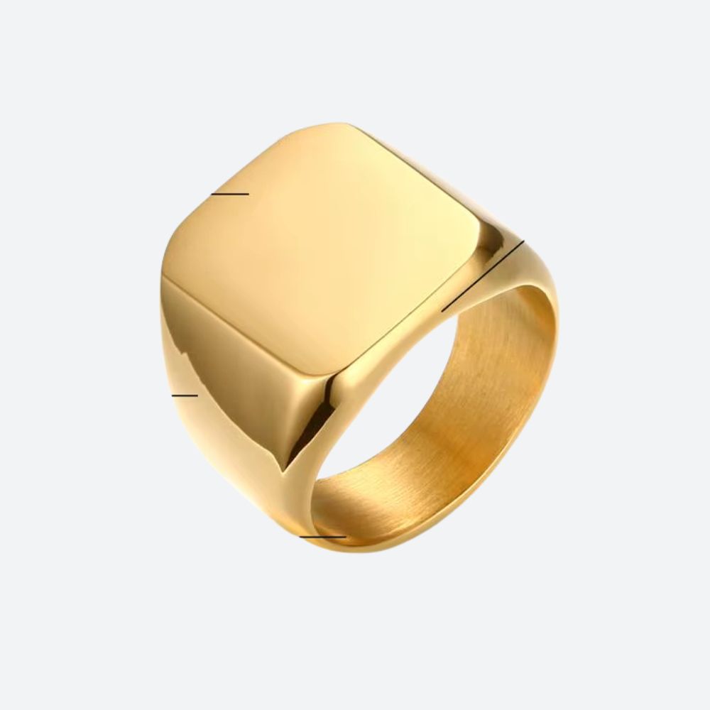 La forme carrée de cette bague en fait une pièce distinctive, symbole de stabilité et de confiance. Sa texture parfaitement polie renforce son allure sophistiquée, idéale pour accompagner vos tenues les plus travaillées comme vos looks du quotidien.