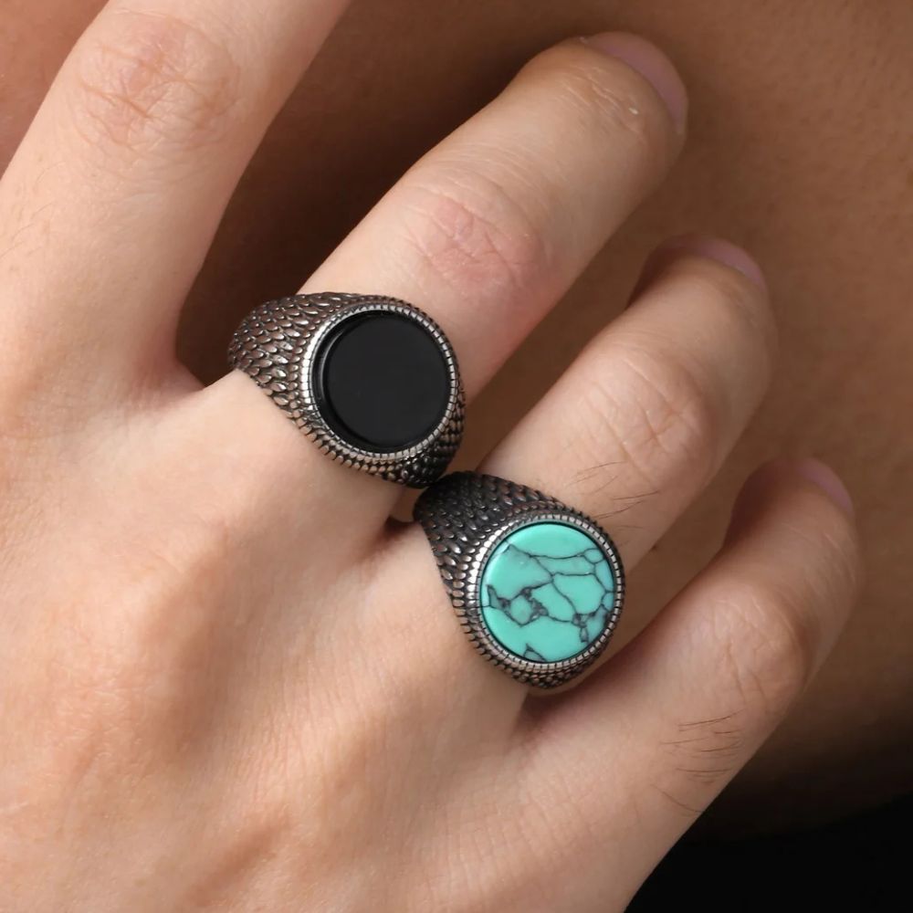 La turquoise est reconnue pour ses nuances hypnotiques de bleu et de vert, traversées de veines sombres naturelles. Elle évoque la stabilité, la confiance et la clarté d’esprit. En la portant, vous exprimez votre ancrage et votre équilibre intérieur.
