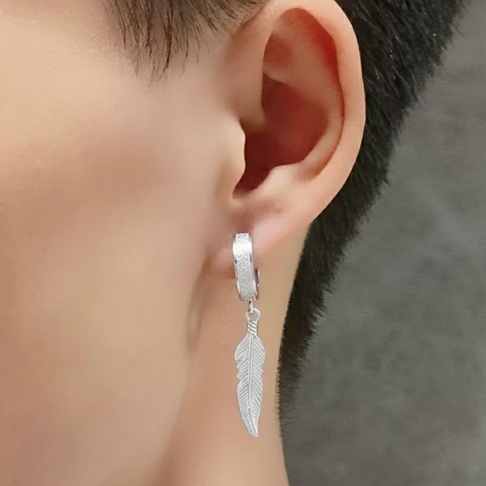 Sa surface subtilement sablée offre un contraste texturé qui renforce le caractère du bijou. Légère et agréable à porter, la boucle d’oreille homme plume argentée s’adapte à votre quotidien avec aisance.