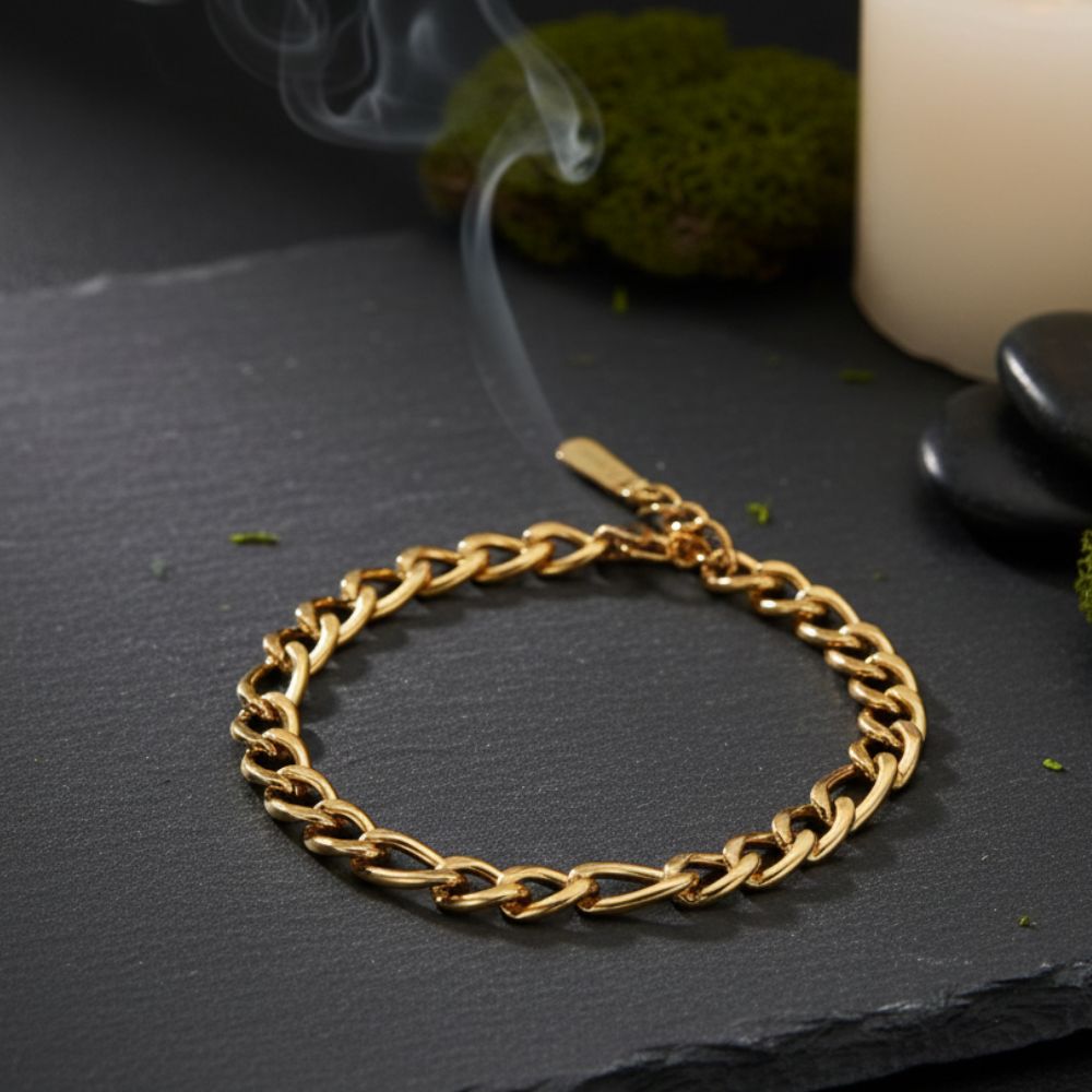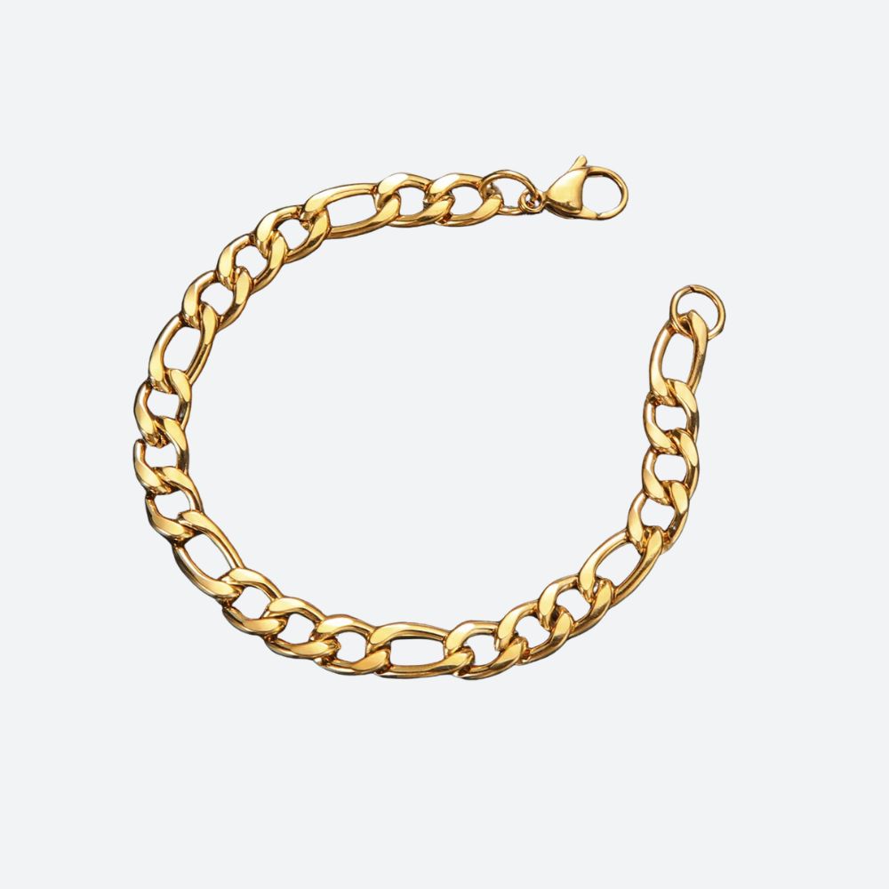 Les maillons travaillés de la maille Figaro offrent un jeu visuel harmonieux, alliant puissance et finesse. Le plaquage or confère au bijou une profondeur lumineuse, idéale pour mettre en valeur votre poignet, aussi bien en tenue décontractée qu’habillée.
