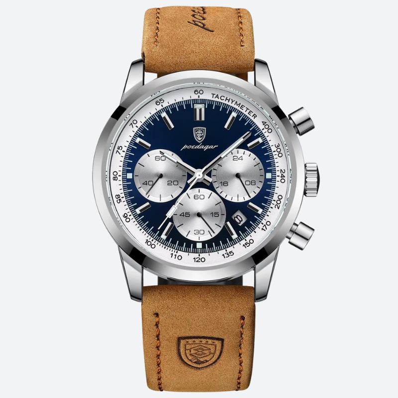 Ce modèle n’est pas qu’un accessoire : c’est un instrument de mesure fiable. Son chronographe précis, combiné à un tachymètre fonctionnel, accompagne vos journées actives. Les sous-cadrans multifonctions traduisent une vision du temps aussi rigoureuse qu’élégante. Une montre chronographe qui conjugue maîtrise du temps et allure contemporaine.