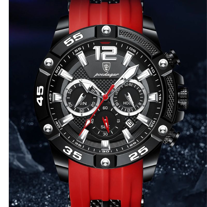 Chaque détail est conçu pour accompagner vos journées les plus intenses. Le mouvement quartz haute précision assure une mesure du temps fluide et fiable, tandis que le cadran multifonction vous permet de suivre les secondes, minutes et heures avec clarté. Robuste mais raffinée, elle devient votre alliée dans tous les moments de vitesse et de performance