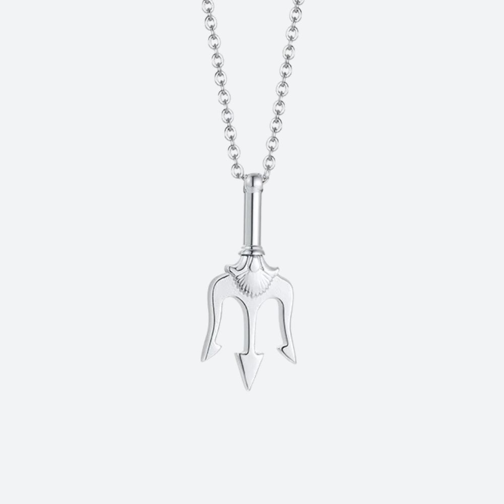 Réalisé en acier inoxydable argenté, ce pendentif allie résistance et éclat durable. Les courbes du trident marin sont finement sculptées, jouant avec la lumière pour un rendu percutant. Chaque détail traduit la maîtrise artisanale d’un bijou fait pour durer.