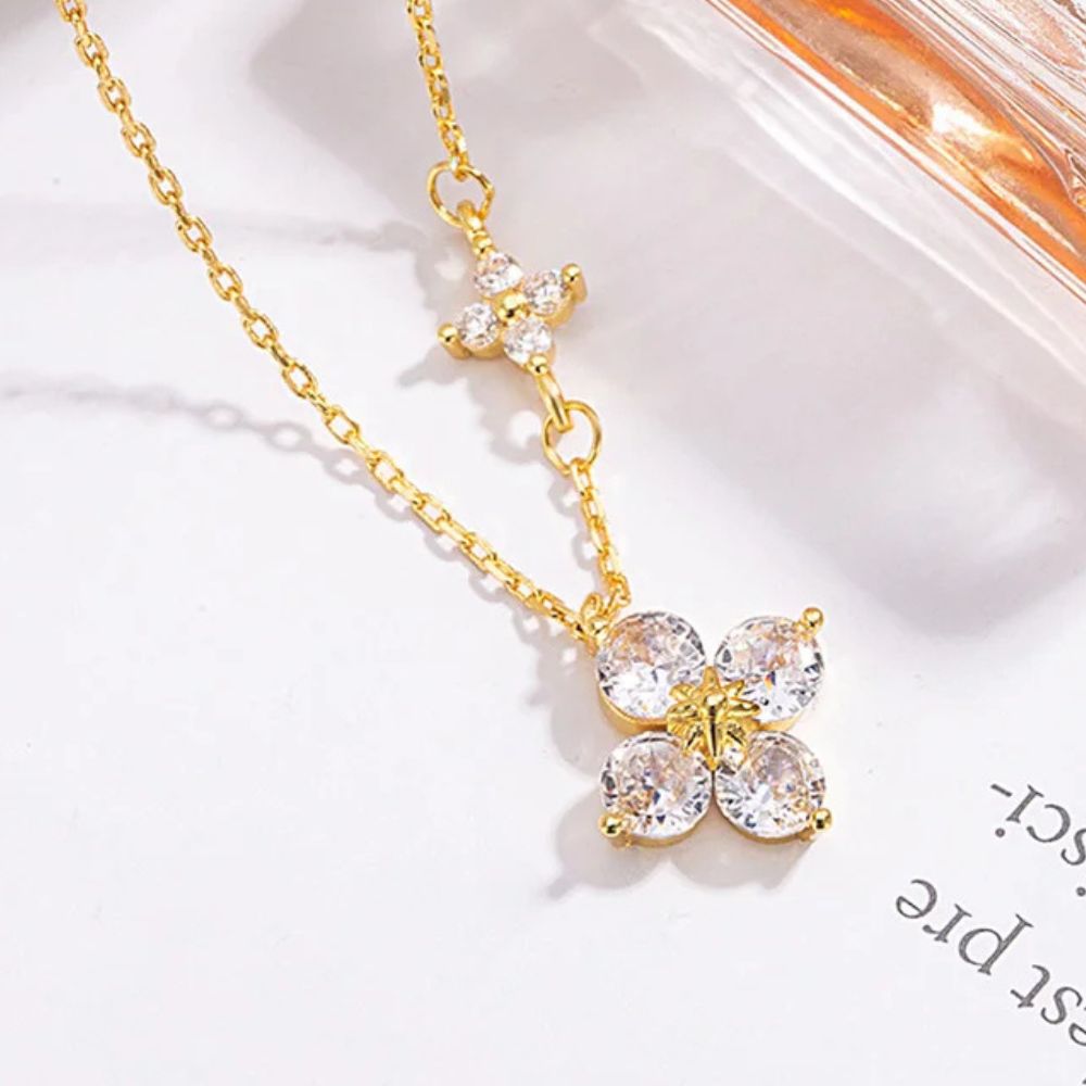 La croix se compose de quatre zircons parfaitement taillés, capturant la lumière à chaque mouvement. Montée sur une chaîne dorée de 40 cm, elle épouse le cou avec justesse. Son éclat cristallin évoque la pureté et la force intérieure dans un équilibre harmonieux.